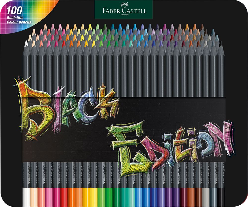 FABER CASTELL CRAYONS DE COULEURS BLACK EDITION BOITE METAL DE 100