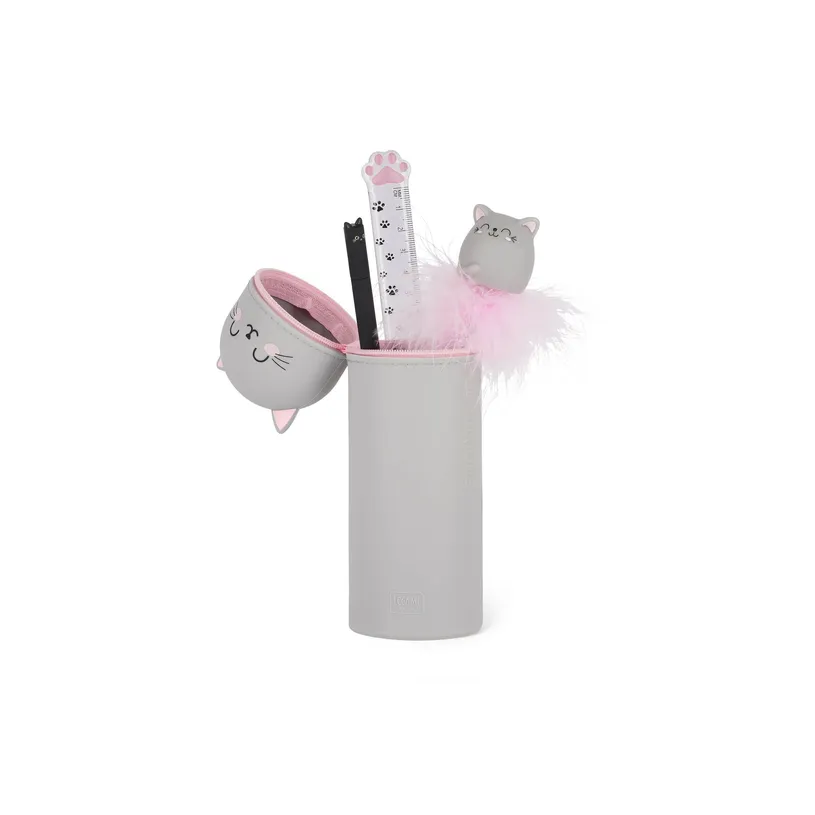 Tous les super-héros ont une double identité : Kawaii, la Trousse 2-en-1 en Silicone Souple sur le thème Kitty peut se transformer en pot à crayons de table rien qu’en tournant sur lui-même !