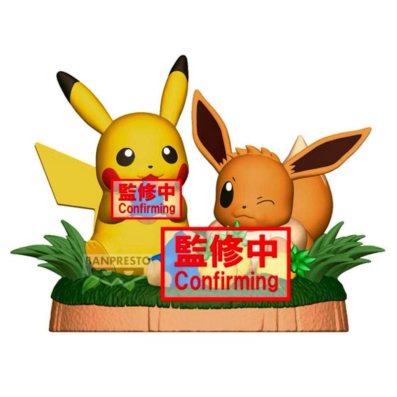 Cette figurine de l’univers de Pokemon nous présente les célèbres Pikachu et Evoli en train de faire un petit festin dans l’herbe grâce à un socle diorama vraiment trop craquant !