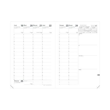 Agenda hebdomadaire avec présentation de la semaine sur 2 pages afin d’offrir une vue d’un seul coup d’œil