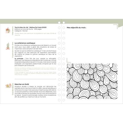 Agenda perpétuel semainier enrichi de pages pratiques (mots de passe, bucket-list, fruits et légumes de saison, budget) et de conseils (idées lectures, inspirations bien-être et activités détente)