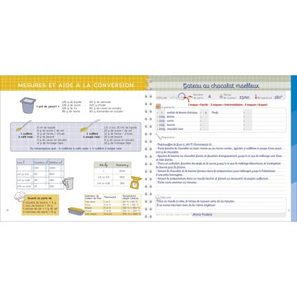 Carnet de cuisine dédié aux enfants contenant des pages d’informations pratiques (fruits et légumes de saison, conseils et précautions pour cuisiner, mesures et aides à la conversion)